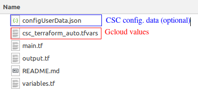 Edit the file " csc_terraform_auto.tfvars" and complete all values. See example below